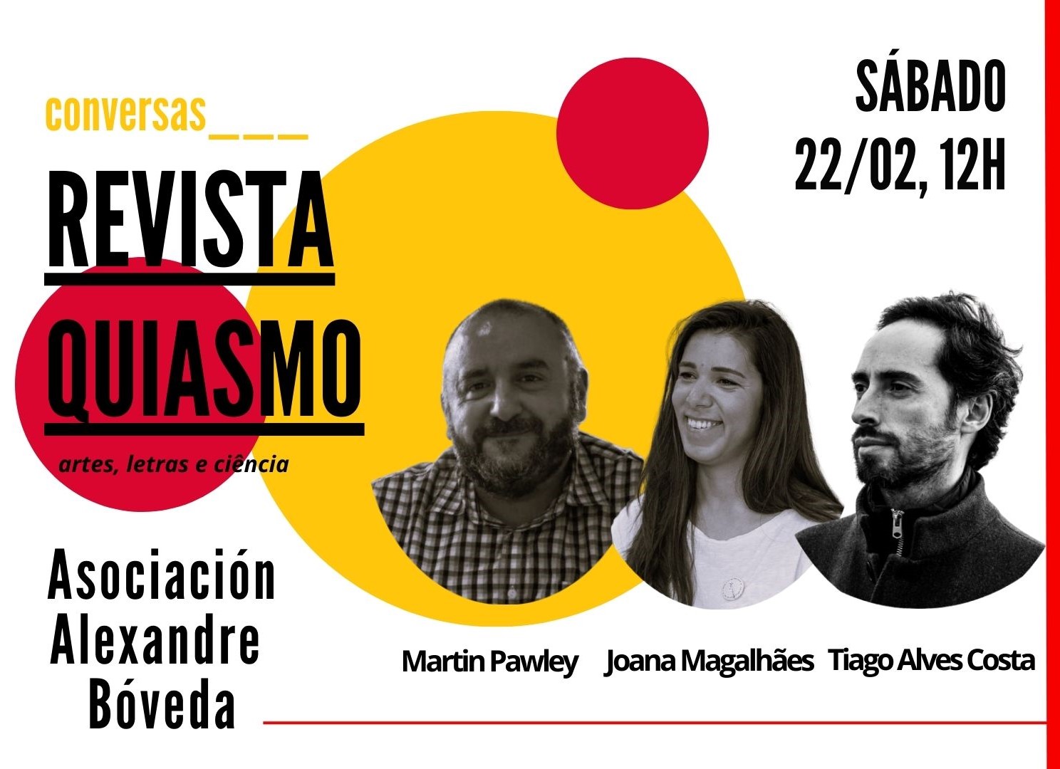 O evento contará com a presença de Tiago Alves Costa, Joana Magalhães e Martin Pawley, que irão partilhar as suas perspetivas sobre o percurso da revista e as pontes que tem construído entre diferentes culturas e expressões artísticas. Será uma oportunidade única para discutir o impacto da Quiasmo no panorama cultural e literário, bem como para explorar os caminhos que se avizinham.