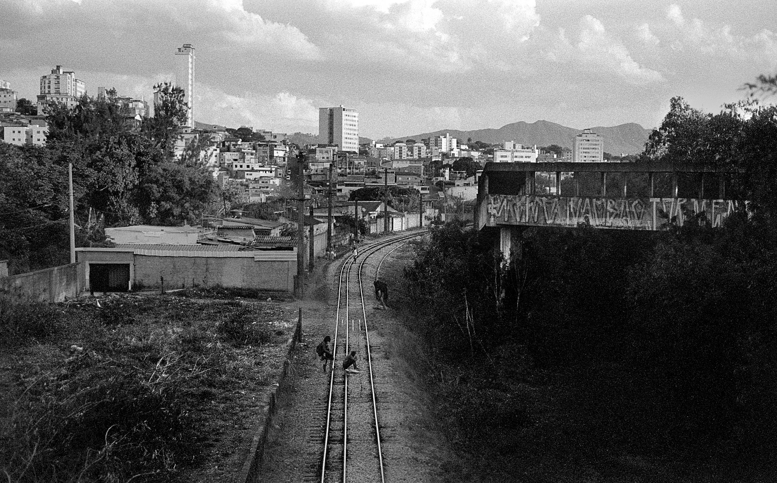 Em itálico. Então, lemos nas fotos marcas cravadas naquele mesmo cenário, meio século após as registradas pelo seu colega de câmera. O antes floresta agora uma artéria viva e decrépita cruzando a cidade. Algo assemelhado a um abismo entre colinas decepadas. Ou a uma paisagem lunar cortada como “uma fruta por uma espada”, verso de João Cabral que serve de epígrafe ao livro.